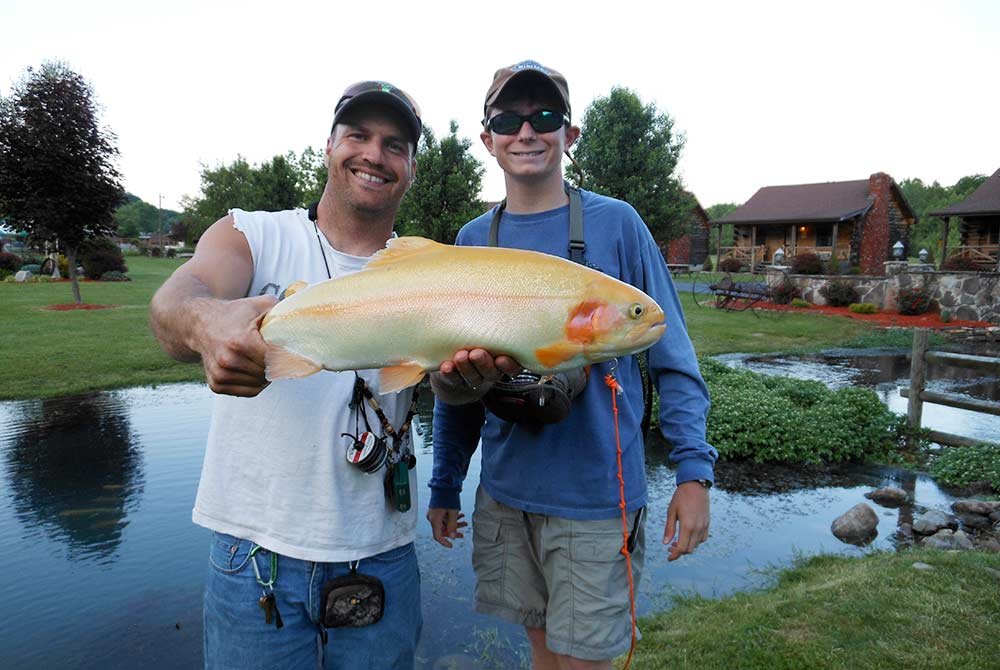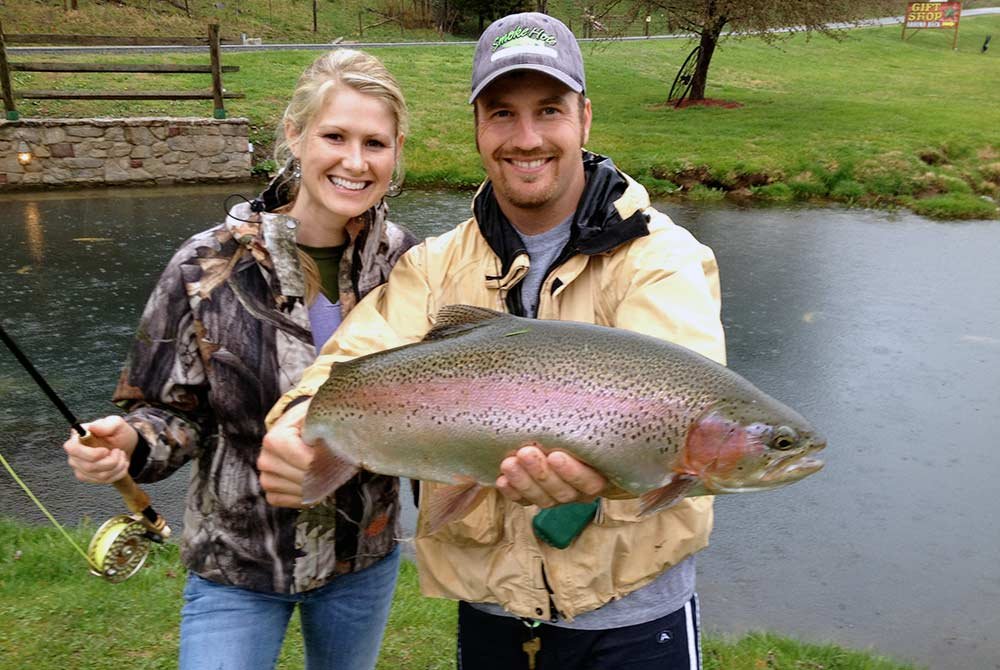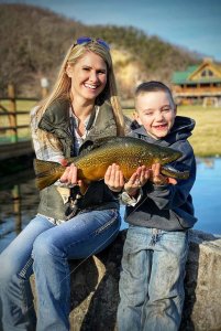 Have you ever felt what it’s like to reel in an 8 lb. trout? Now’s your chance!! Our private Catch ‘n Release Trophy Trout Stream is located in the log cabin area of the Resort and runs under the covered bridge. These beautiful rainbow, brook, golden, brown, and tiger monster trout can range between 2 to 10 lbs. Some of the trout in this area are around a decade old. Stop by to feed and admire them, or call Smoke Hole Outfitters to make an appointment to throw in your line and catch a brooder!! Small children beware…we must tie you off with a safety rope. Juuuuuust kidding!! But seriously, you’ll definitely want to have your camera ready!! We charge per half-hour, half-day, or full-day. The Catch ‘n Release spring creek is fully guided. Please call for pricing and to make an appointment.