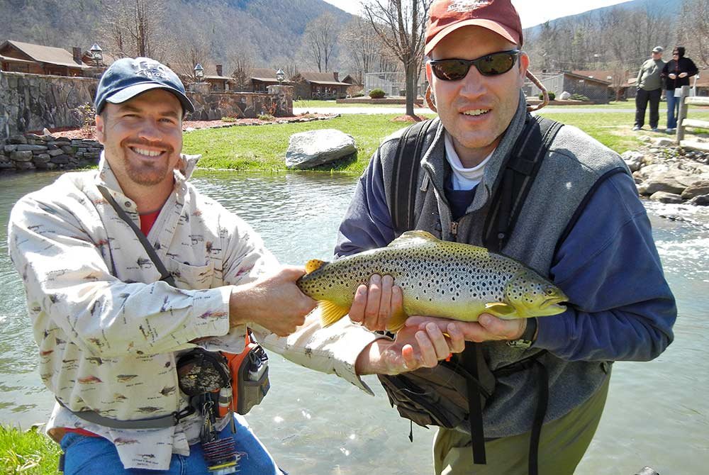 Yes. These are very large trout, sometimes making it very difficult to put your hands around them. Some of these trout have been in our care for over 9 years. We want to make sure they are well taken care of as they are reeled in, the hooks are taken out of their lips, and they are properly released back into the stream. A Smoke Hole Outfitter guide must be with every Catch ‘n Release customer. No exceptions!